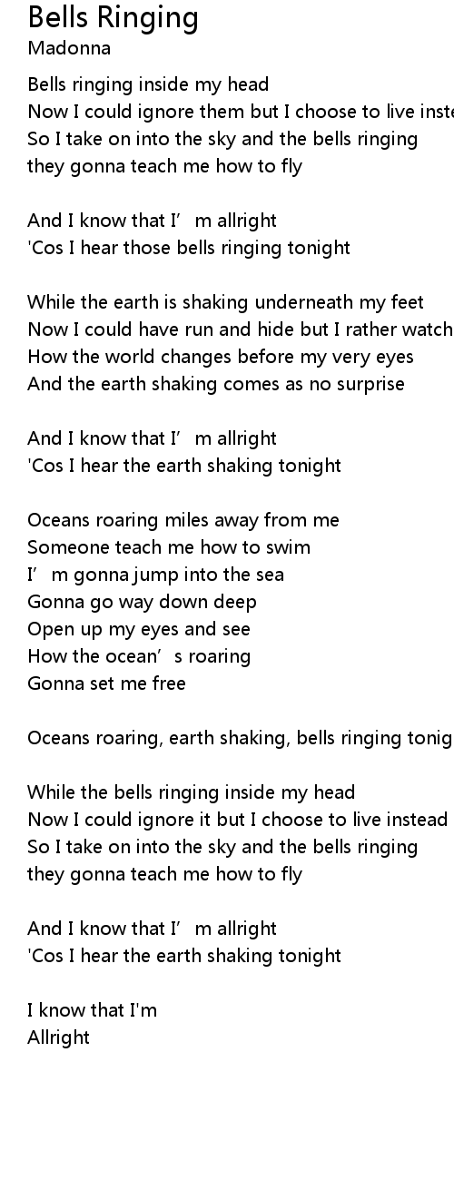 | Oceans roaring, earth shaking, bells ringing tonight | |