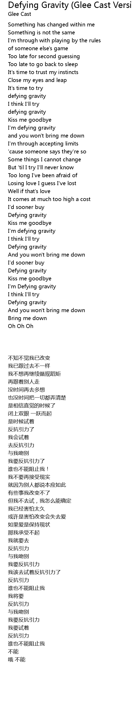 I'm Defying gravity |