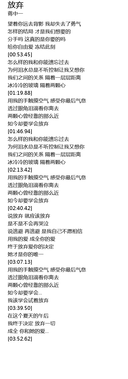 | [03:31.30] | 我该学会试着放弃 |