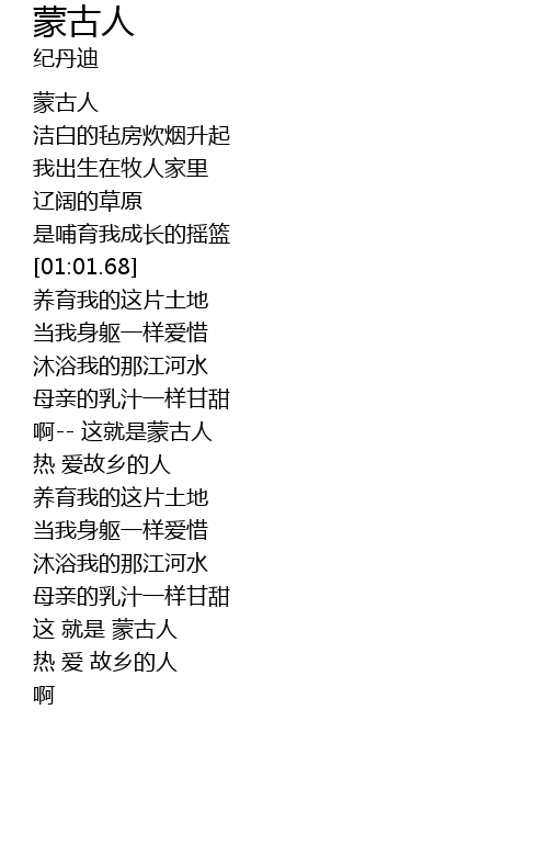 | [01:36.37] | a zhè jiù shì měng gǔ rén |