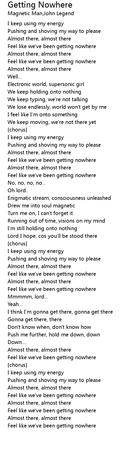 | Feel like we' ve been getting nowhere | |
