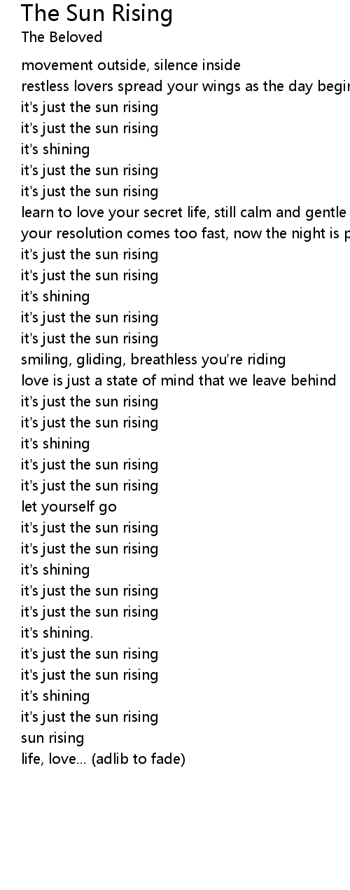 | Song | The Sun Rising |
