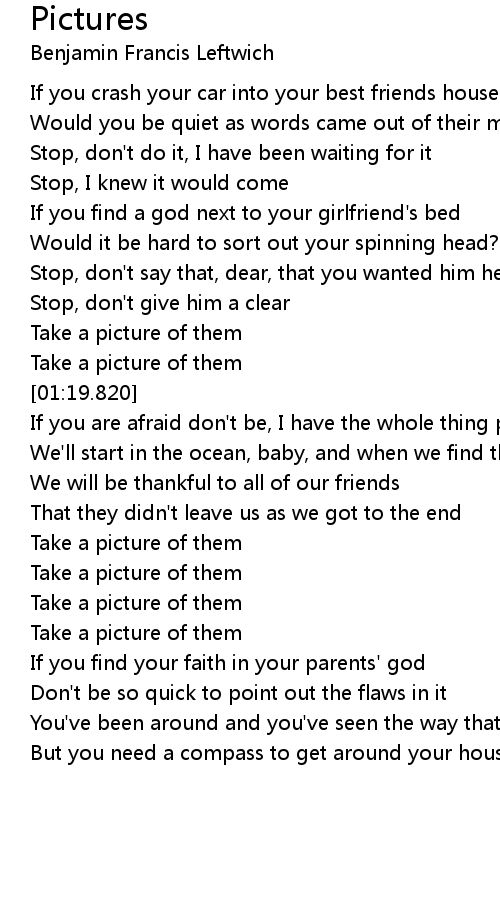 | [02:03.20] | Take a picture of them |