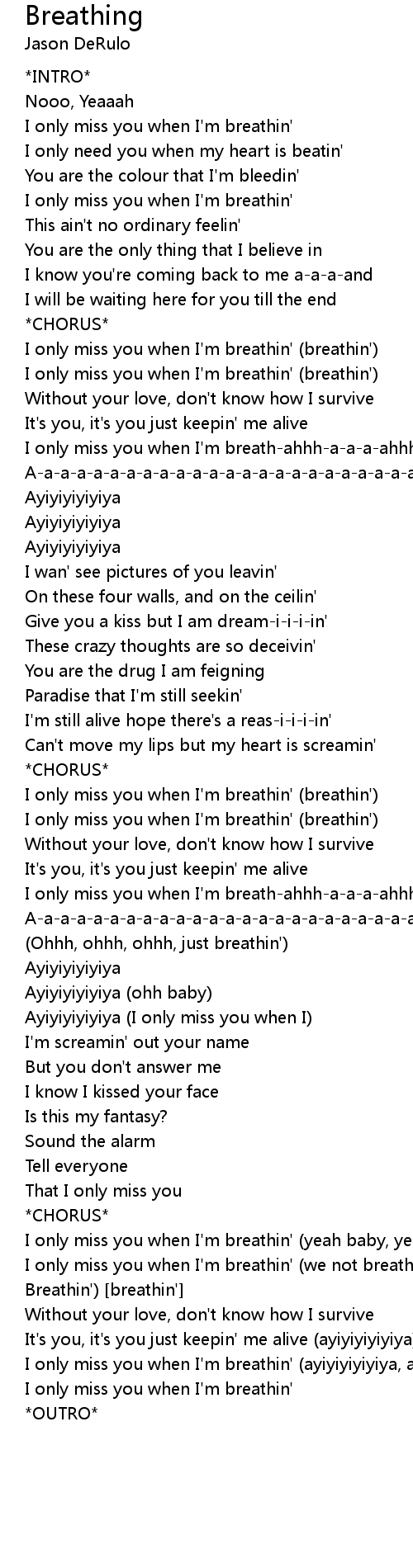 I only miss you when I'm breathin' (ayiyiyiyiyiya, ayiyiyiyiyiya) |