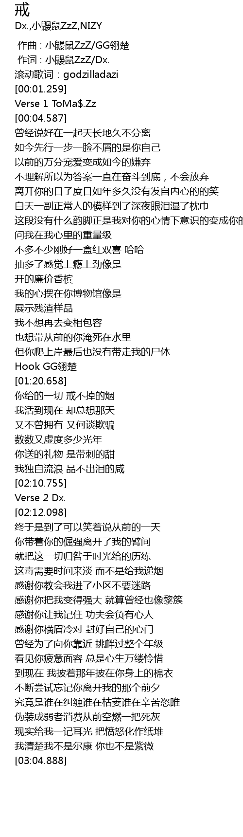 | [00:00.000] | gǔn dòng gē cí: godzilladazi |