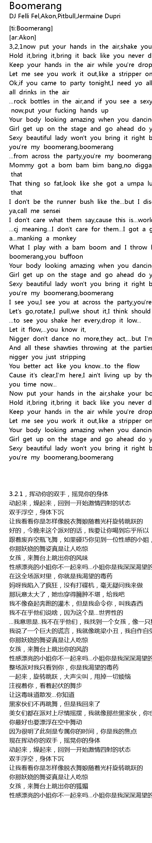 [02:56.279] Sexy beautiful lady won't you bring it right back,...lady you're my boomerang,boomerang