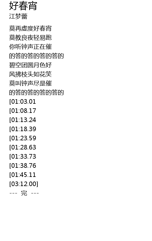 | [00:22.23] | mò zài xū dù hǎo chūn xiāo |