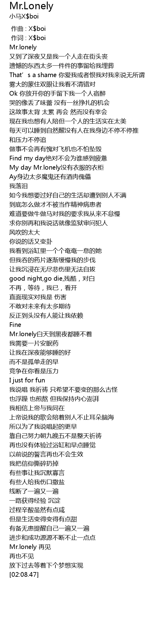 | [01:22.68] | Mr. lonely bai tian dao hei ye dou shui bu zhao |