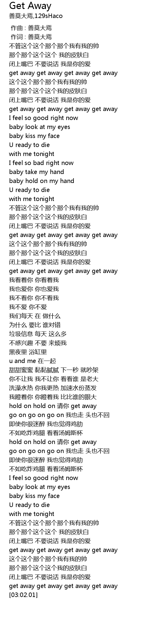 | [02:58.77] | get away get away get away get away |