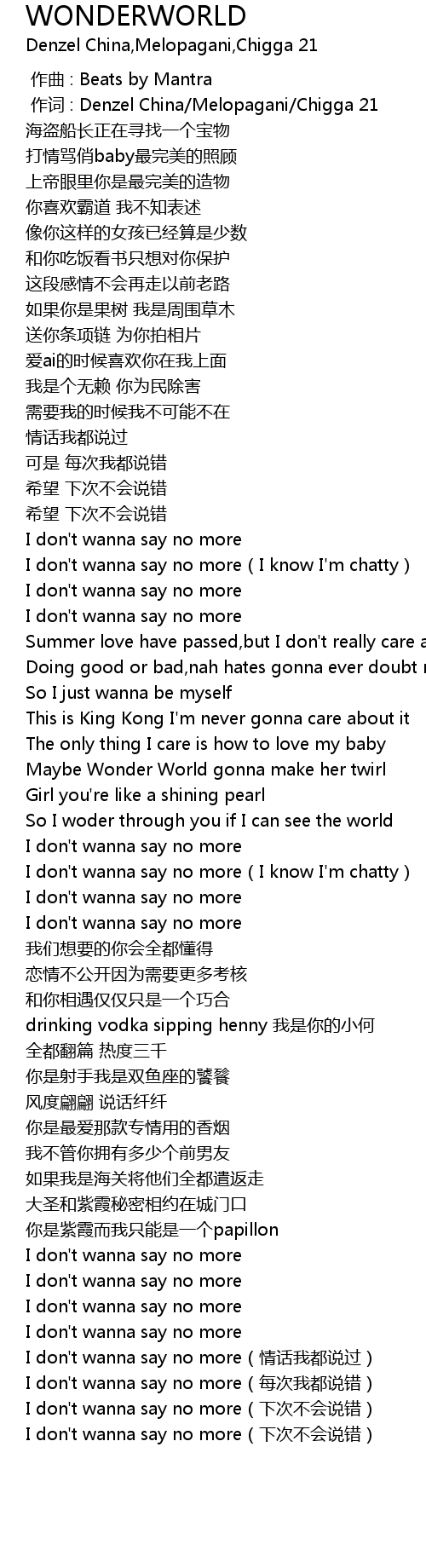 | [00:01.000] | 作词 : Denzel China/Melopagani/Chigga 21 |