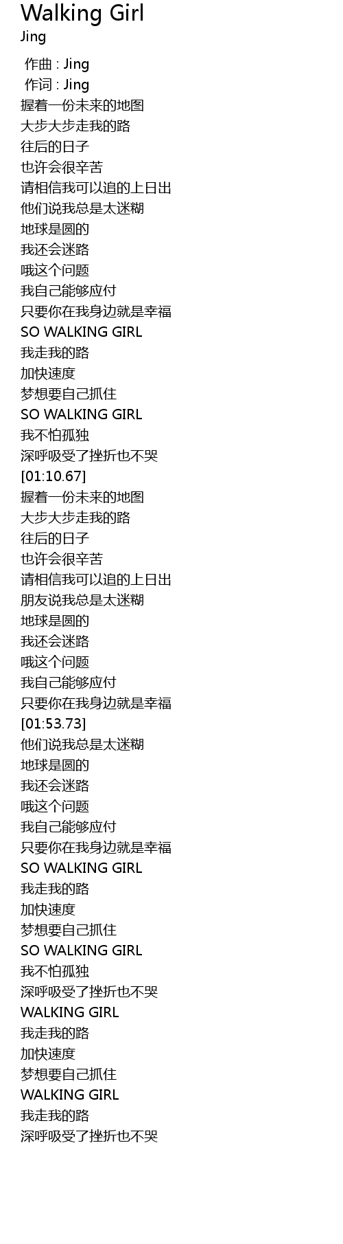 | [00:53.73] | wǒ zǒu wǒ de lù |