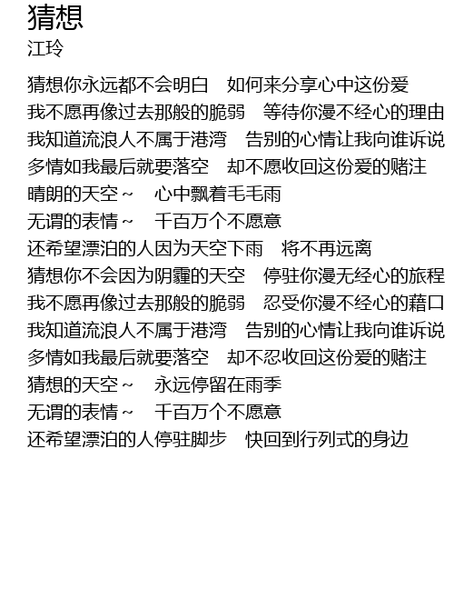 | 还希望漂泊的人因为天空下雨 将不再远离 | |