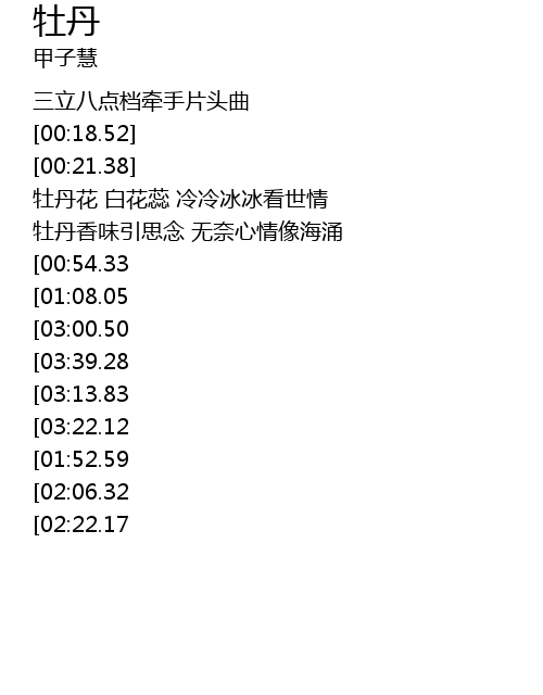 | [02:34.16][00:54.33] | 牡丹花 叶离枝 看尽冷暖繁华景 |