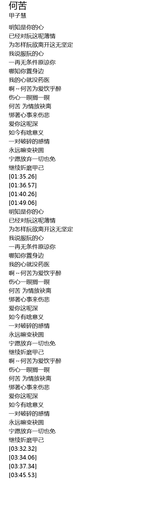 | [02:55.93] | a hé kǔ wèi ài yǐn hū zuì |