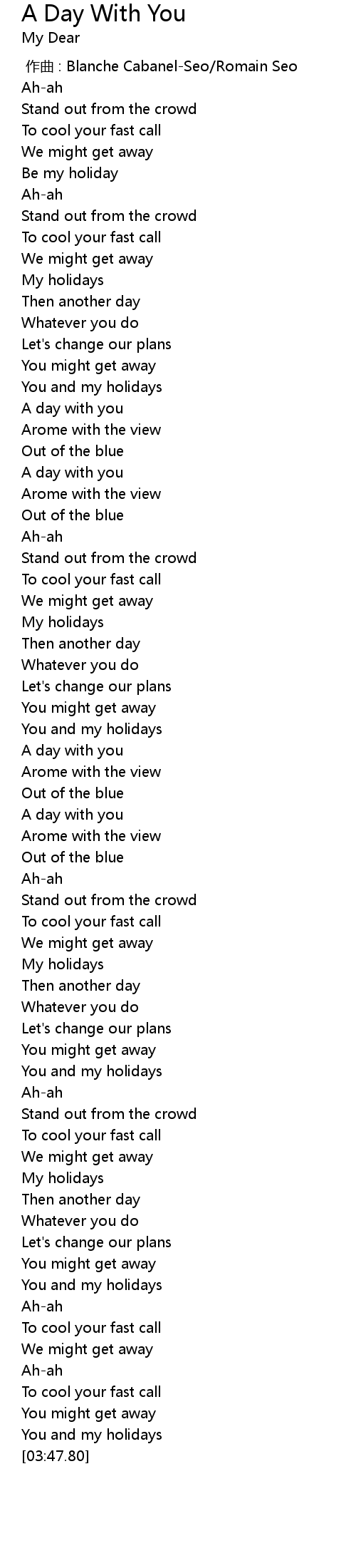 | [03:44.56] | You and my holidays |