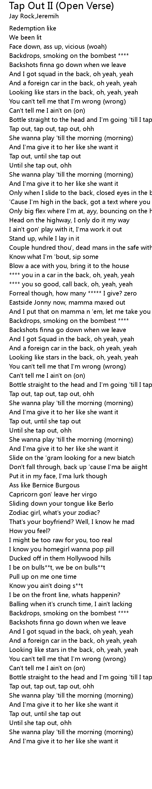 | [02:58.57] | Tap out, tap out, tap out, ohh |