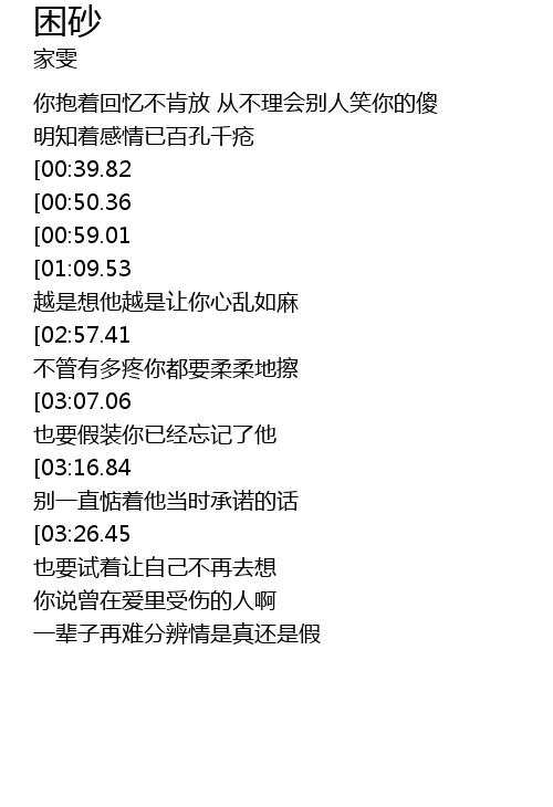 | [03:55.21][02:57.41][01:19.23] | dan hui yi jiu xiang kun jin yan li de sha bu guan you duo teng ni dou yao rou rou di ca |