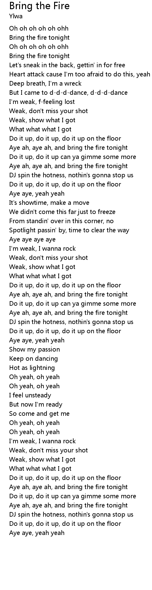 Aye ah, aye ah, and bring the fire tonight |