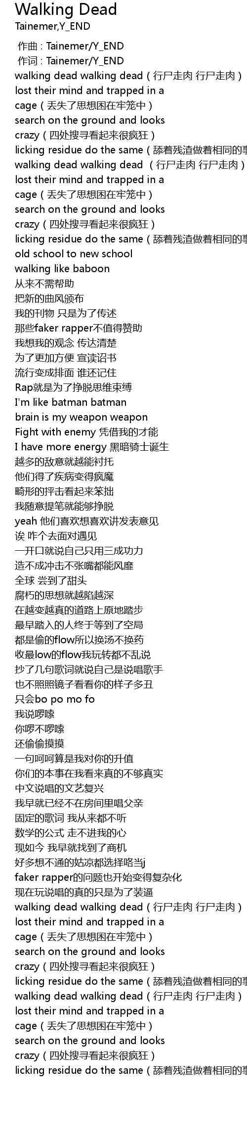 | [00:38.095] | walking dead walking dead xing shi zou rou xing shi zou rou |