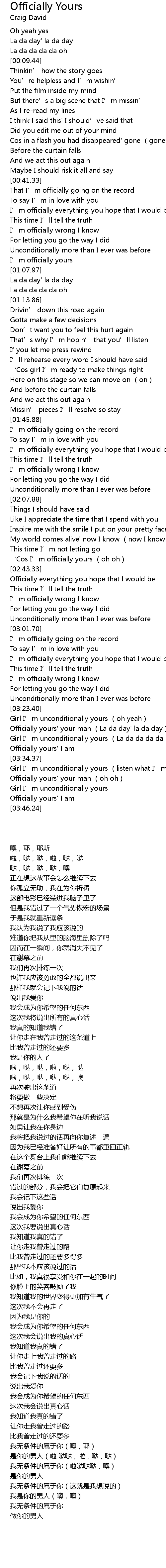 | [02:38.38] | ' Cos I' m officially yours oh oh |