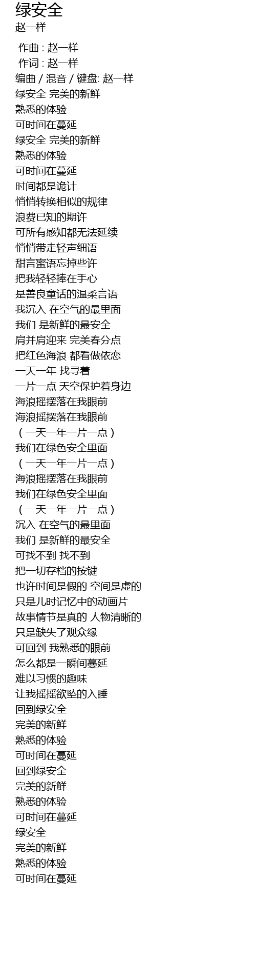| [00:11.883] | 编曲/混音/键盘: 赵一样 |