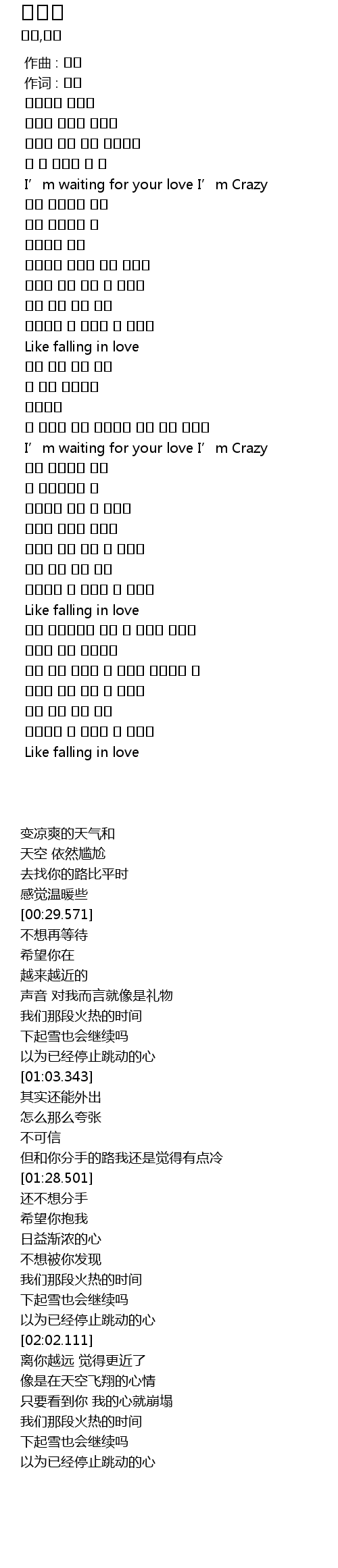 | [00:29.571] | I' m waiting for your love I' m Crazy |
