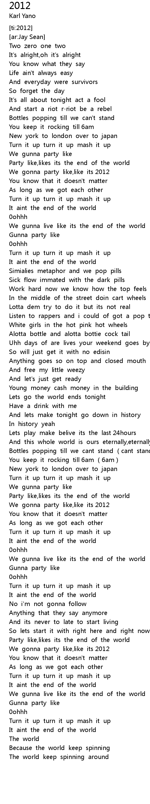 | [01:31.213] | Alotta bottle and alotta bottie cock tail |
