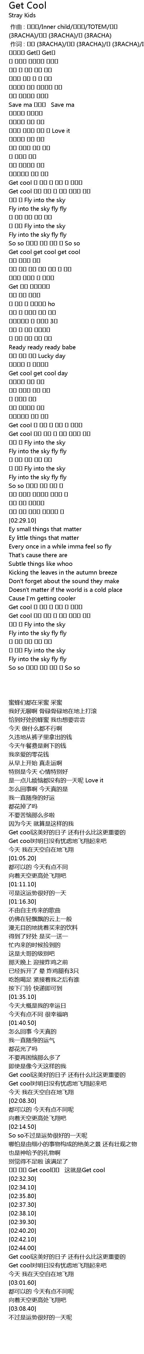 | [02:54.20] | Get cool 내일 걱정 안 하며 날아갈 거야 |