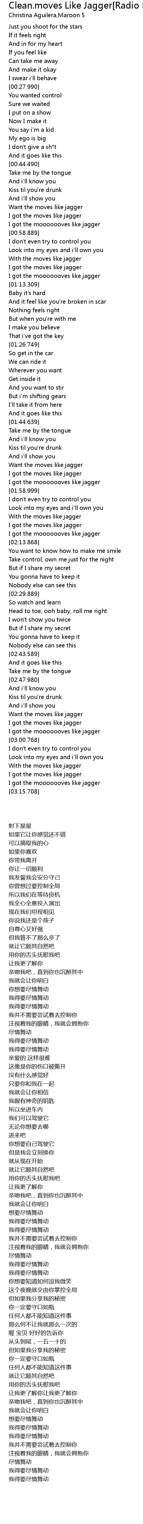 | Song | Clean.moves Like Jagger[Radio Edit] |