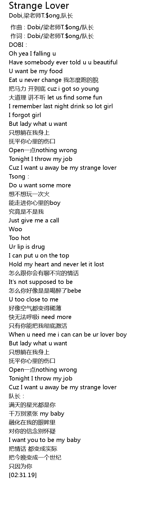 | [01:47.60] | Cuz I want u away be my strange lover |