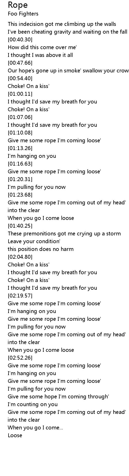 Give me some rope I'm coming loose' |