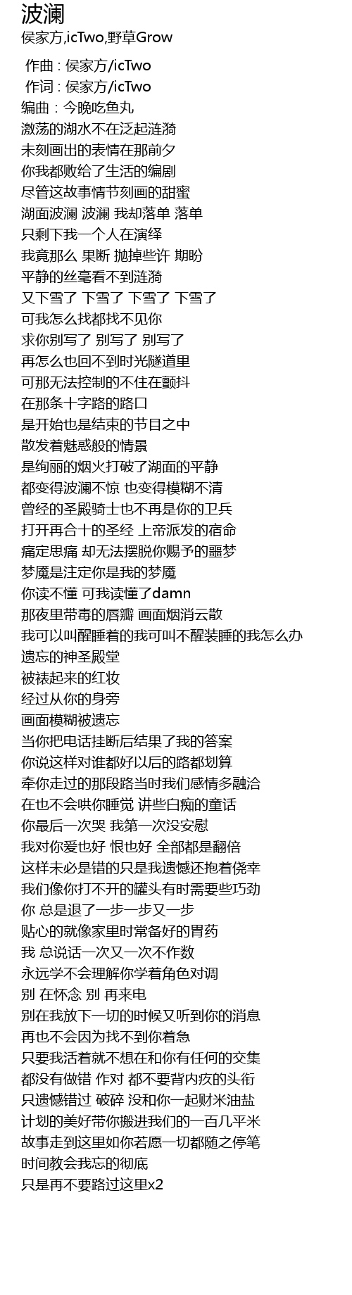 | [00:01.000] | 作词 : 侯家方/icTwo |