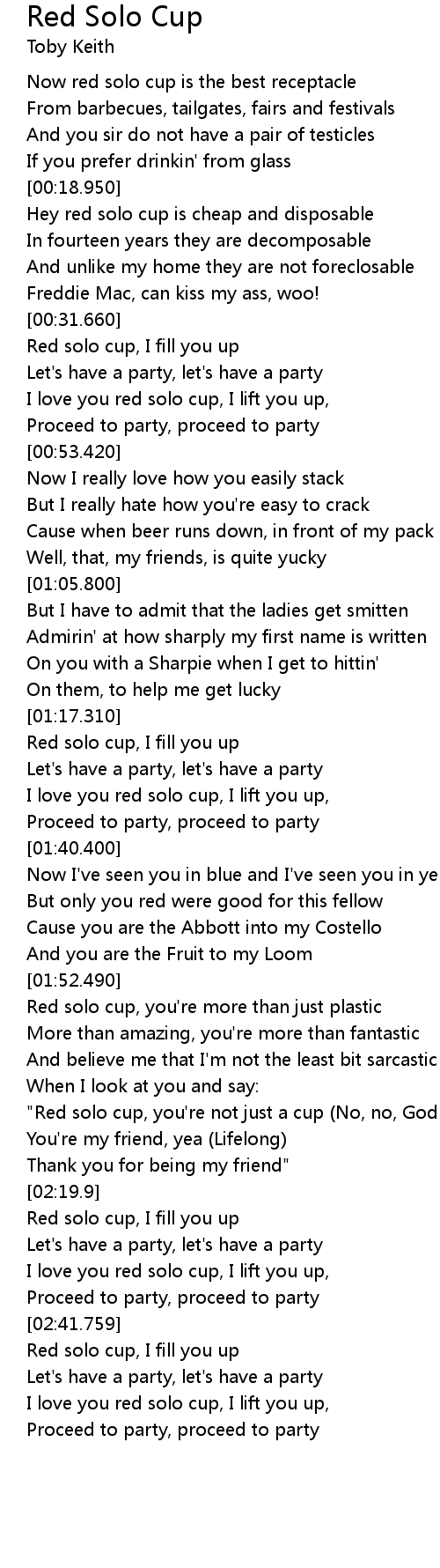 "Red solo cup, you're not just a cup (No, no, God no) |