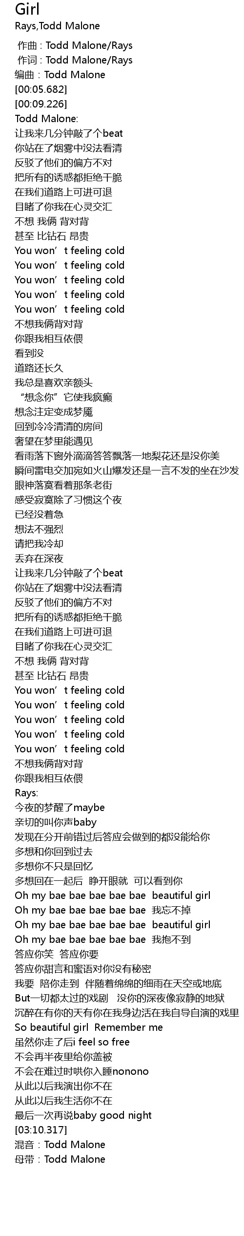 | [02:07.341] | Oh my bae bae bae bae bae beautiful girl |