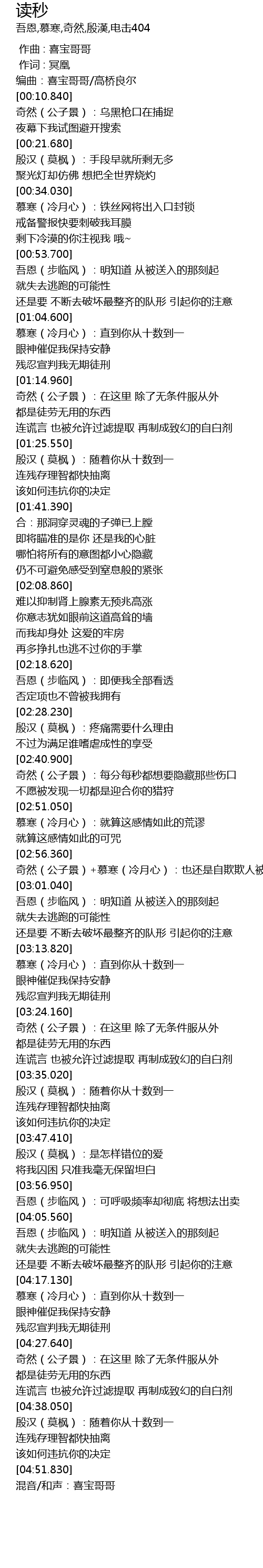 | [04:38.300] | 殷汉(莫枫):随着你从十数到一 连残存理智都快抽离 |