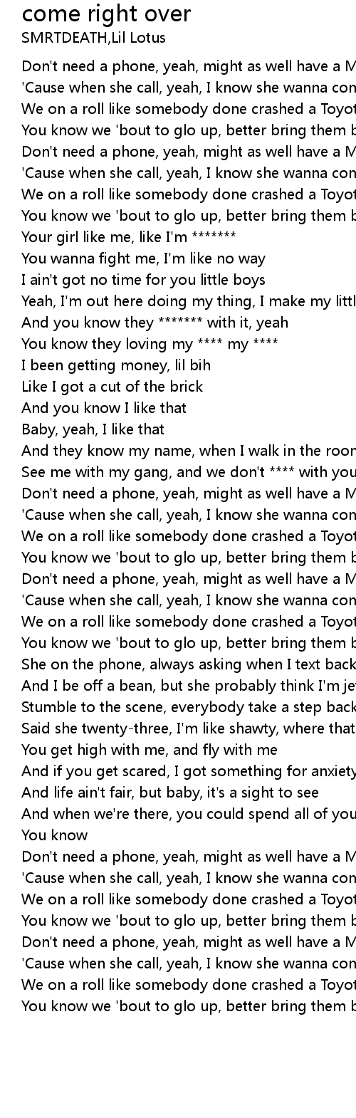 | [00:43.32] | 'Cause when she call, yeah, I know she wanna come right over |