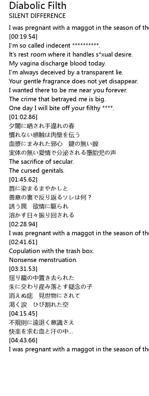 | [01:22.62] | 血漿にまみれた邪心 鍵の無い膣 |