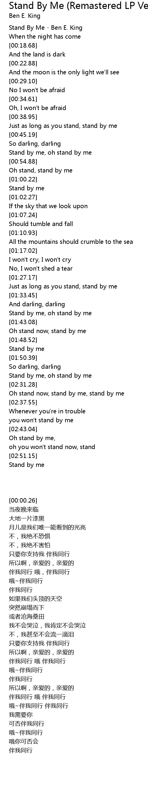 Just as long as you stand, stand by me |