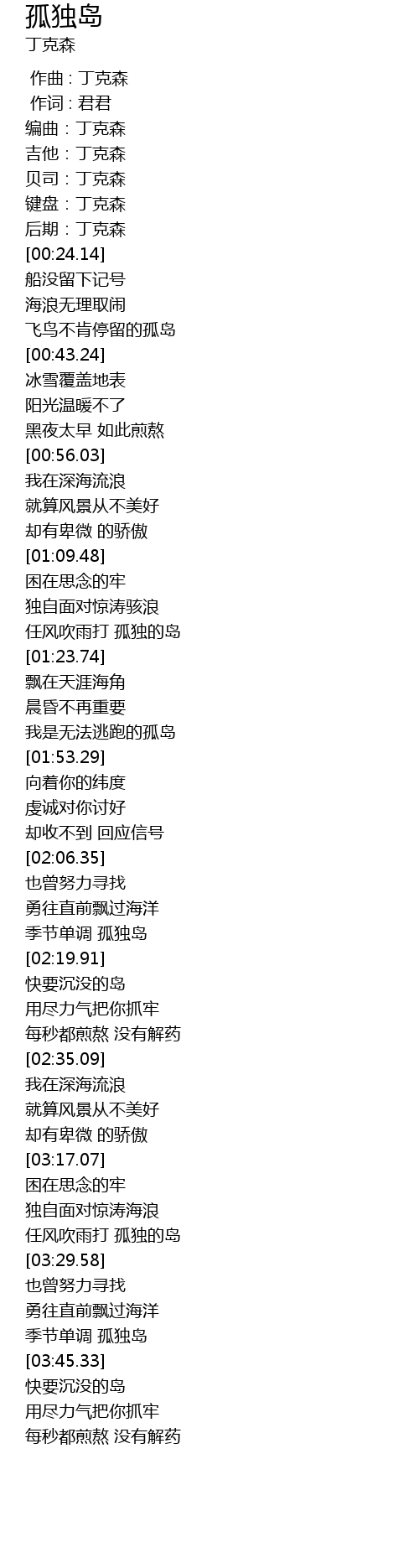 | [03:39.55] | 季节单调 孤独岛 |