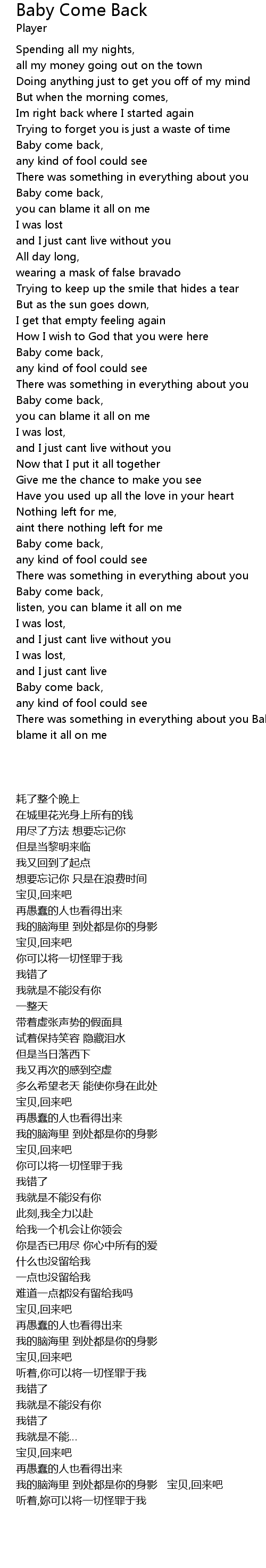 Baby come back, |
