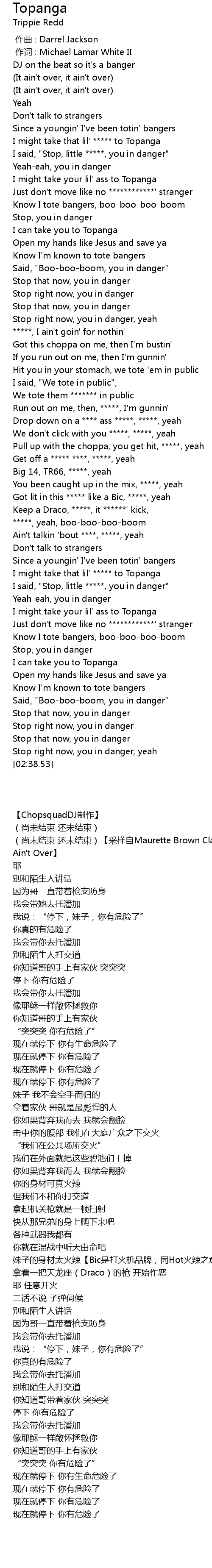 | [00:54.93] | I said, "Stop, little *****, you in danger" |
