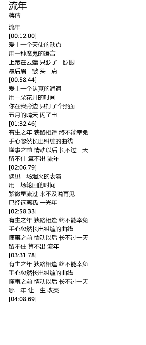 | [01:58.77] | liú bú zhù suàn bù chū liú nián |