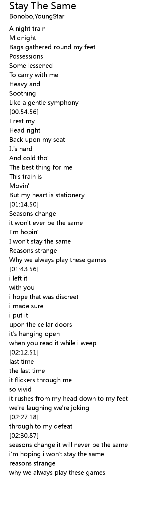 | [02:49.25] | i'm hoping i won't stay the same |