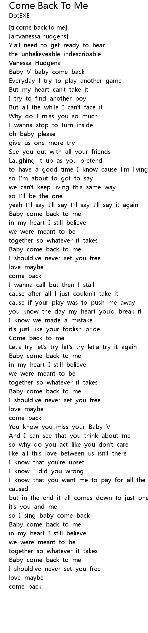 Baby come back to me |