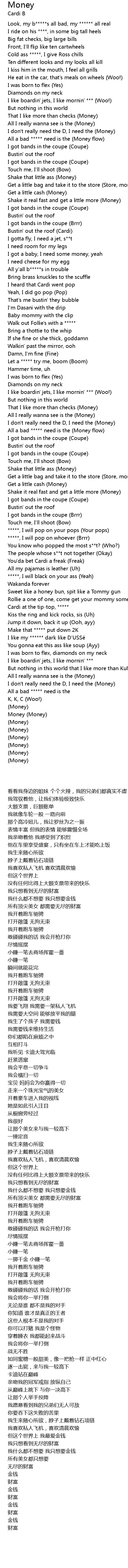 | [00:26.92] | All I really wanna see is the (Money) |