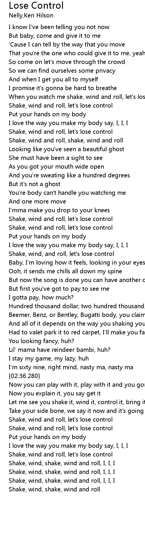 When you watch me shake, wind and roll, let's lose control |