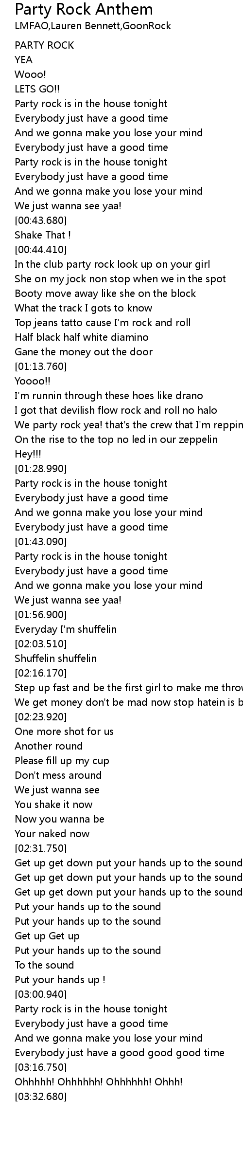 Party rock is in the house tonight |