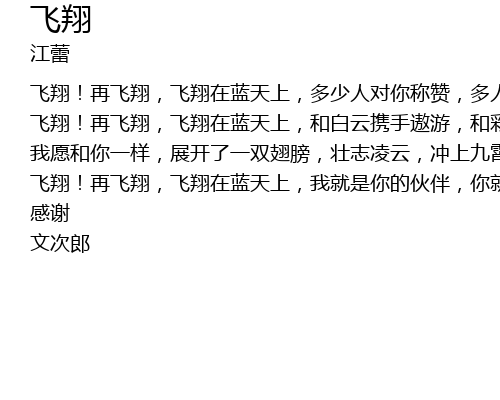 | fei xiang! zai fei xiang, fei xiang zai lan tian shang, he bai yun xie shou ao you, he cai xia xian hua jia chang, | |
