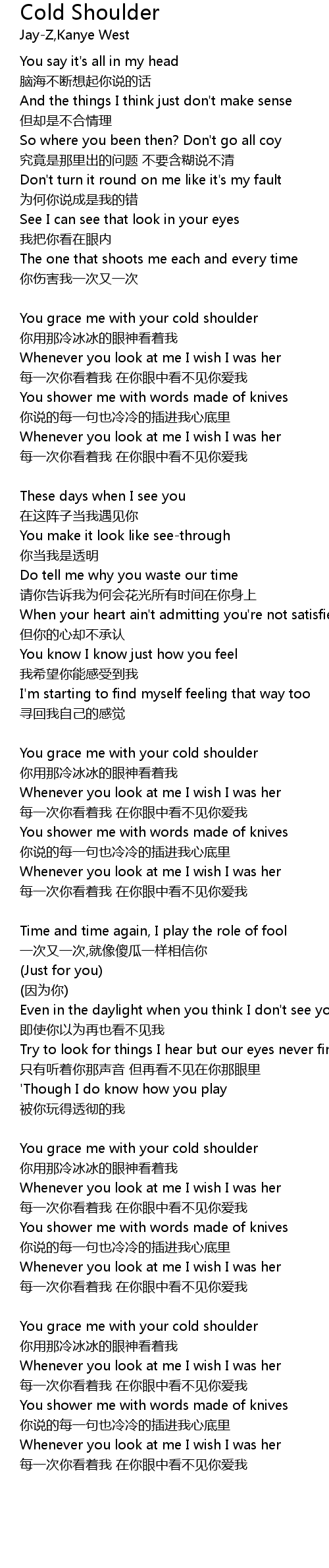 | You grace me with your cold shoulder | |