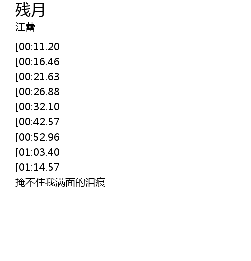 | [01:45.35][00:21.63] | 一弯残月 又是一弯残月 |